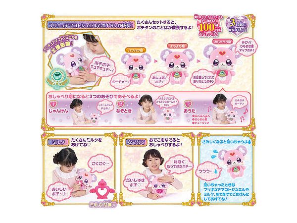 ポチタンの成長段階と、セットするプリキュアマコトジュエルによって、おしゃべり内容が変わります。