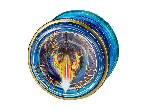 「アクセルオリジン-ドラゴニックブレイド-」は古代のドラゴンと剣をモチーフとしたデザインがあしらわれた水色のヨーヨーです。