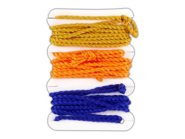 「アクセルストリング×3本」は約100cmの交換用ストリングで、色は青色、オレンジ色、黄土色の3色です。