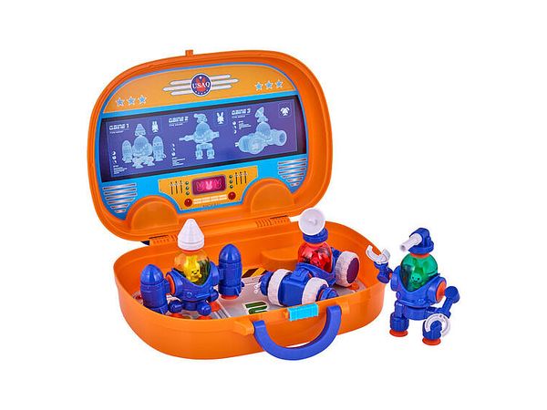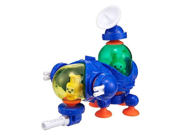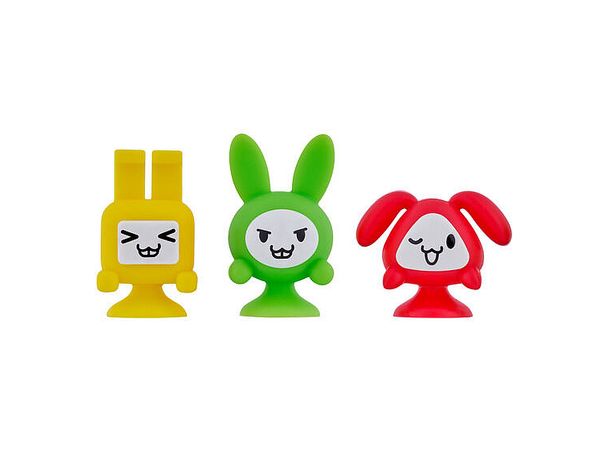 吸盤付き人形「ウサキュー」が3体とウサキューが乗り込む「コアユニット」が3つ、加えてたくさんのカスタムパーツと収納バッグがセットになった商品です。