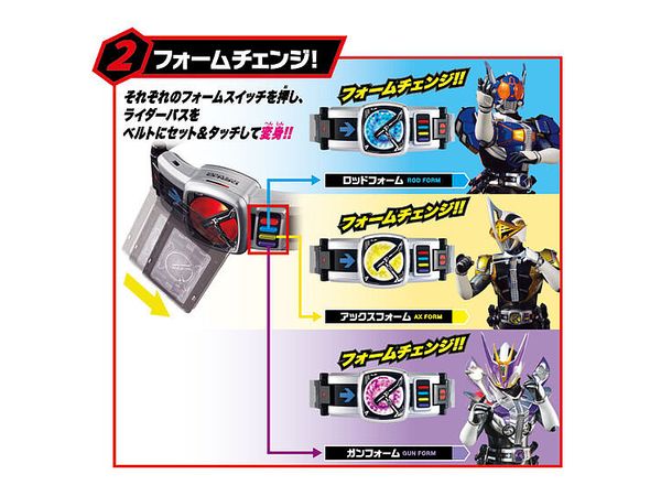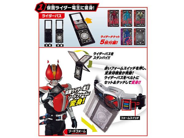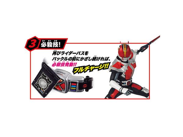 フォームスイッチを押し、付属のパスをセット・タッチすることで仮面ライダー電王に変身!