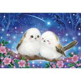 満天の星が瞬く夜、寄り添う二羽のシマエナガが、流れ星にそっと願いを託すひととき。