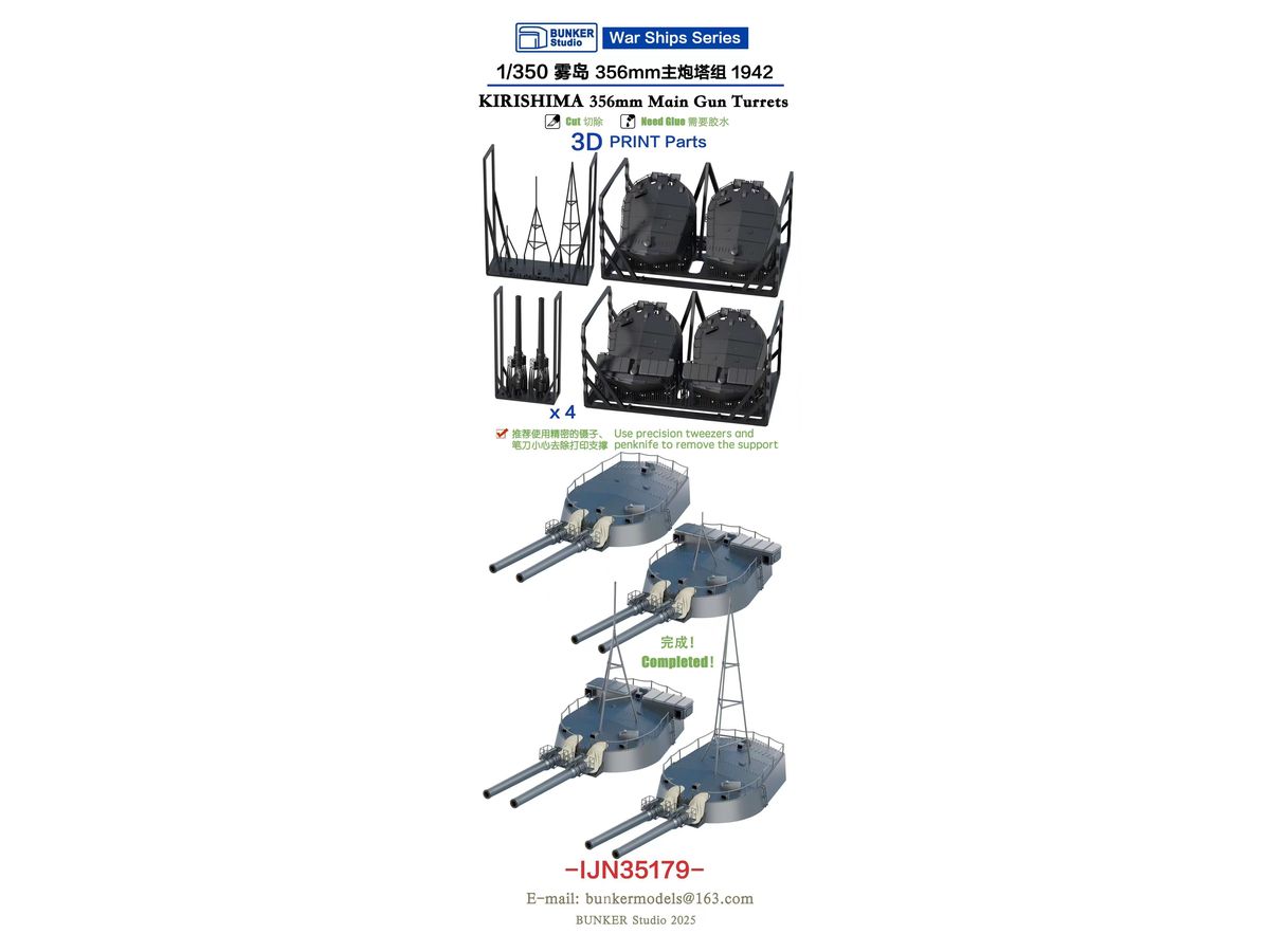 1/350 日本海軍 霧島 35.6cm45口径連装砲セット (4基) (1942年)