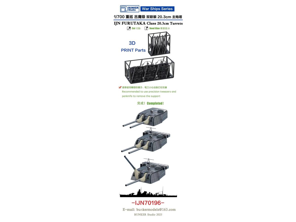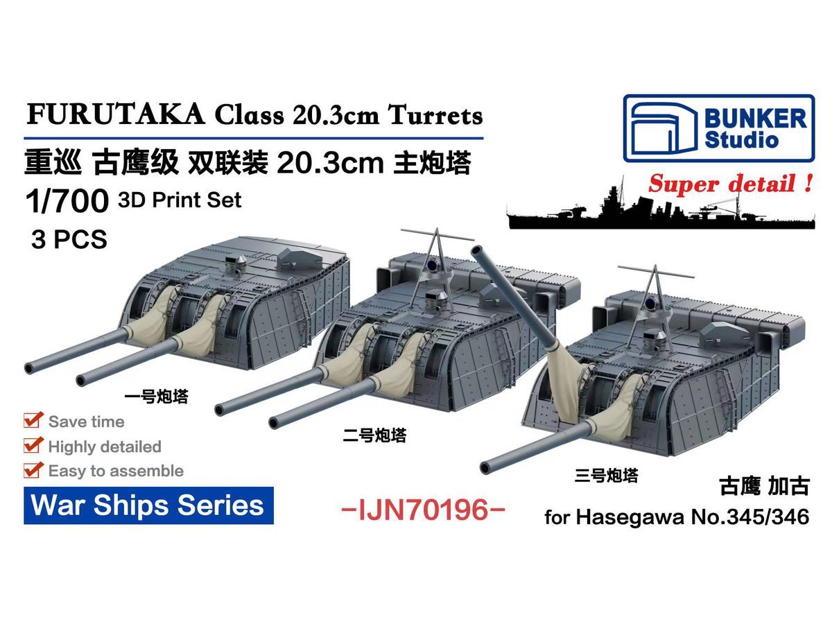 1/700 日本海軍 古鷹型用五十口径三年式二〇糎砲塔 (3基)
