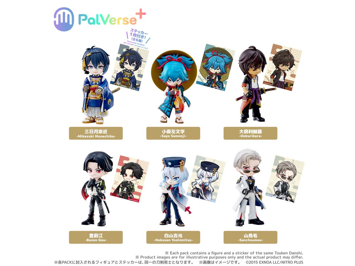 各PACKに封入されるフィギュアとステッカーは、 同一の刀剣男士となります。