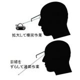 お客様用に調整されたメガネを通して「たすレンズ」で対象物を拡大します。