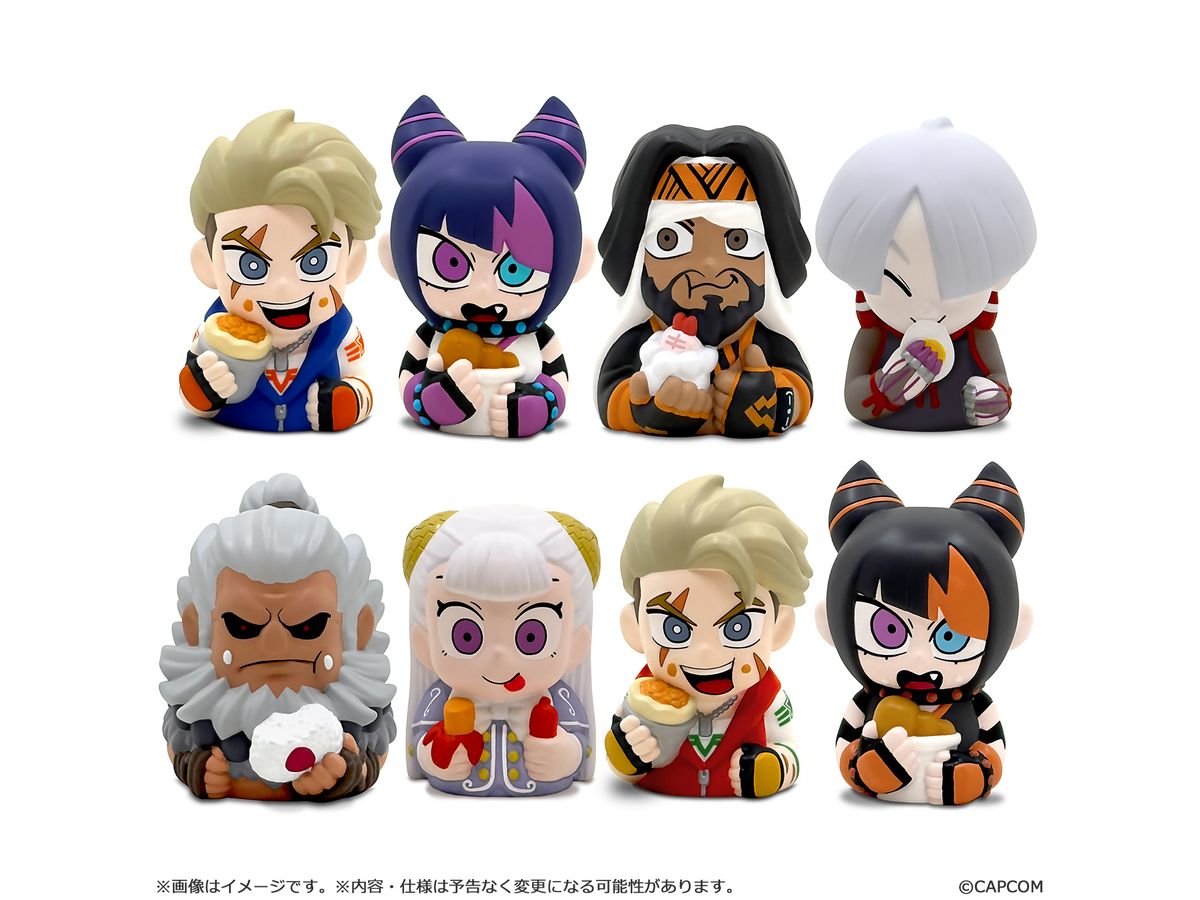 第1弾では「ルーク (ブリトー)」、「ジュリ (ヤンニョムチキン)」、「ラシード (エビシュウマイ)」、「A.K.I. (ゆで卵)」、 「豪鬼( 梅干しおにぎり)」、「イングリッド (魚肉ソーセージ)」の6キャラ+ルークとジュリの色違いを加えた全8種を ラインナップ。