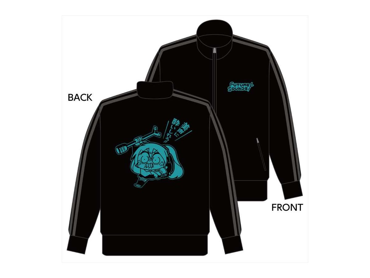 胸元には架空のバンド「FutureSounds」のロゴを、バックデザインにはスタンドマイクを振りかざすミクのイラストがデザインされたジャージが登場!