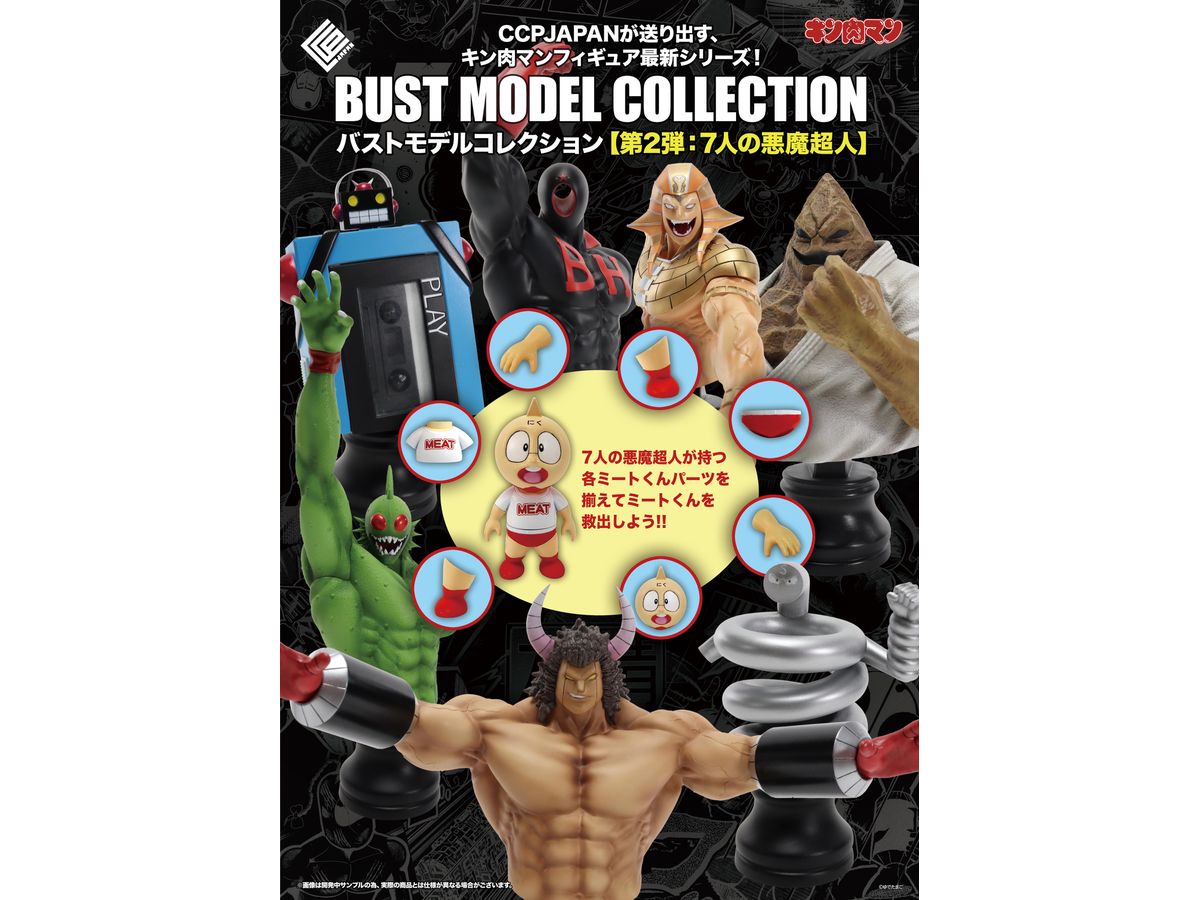 BMCキン肉マンシリーズに新たに『7人の悪魔超人編』が登場!キン肉マン達と激闘を繰り広げた7人の悪魔超人編に始まり、新章である完璧超人始祖編でも様々な活躍をした、 「ステカセキング」「スプリングマン」「ミスターカーメン」「アトランティス」「ブラックホール」「ザ・魔雲天」、そして「バッファローマン」の7種の超人をラインナップ。