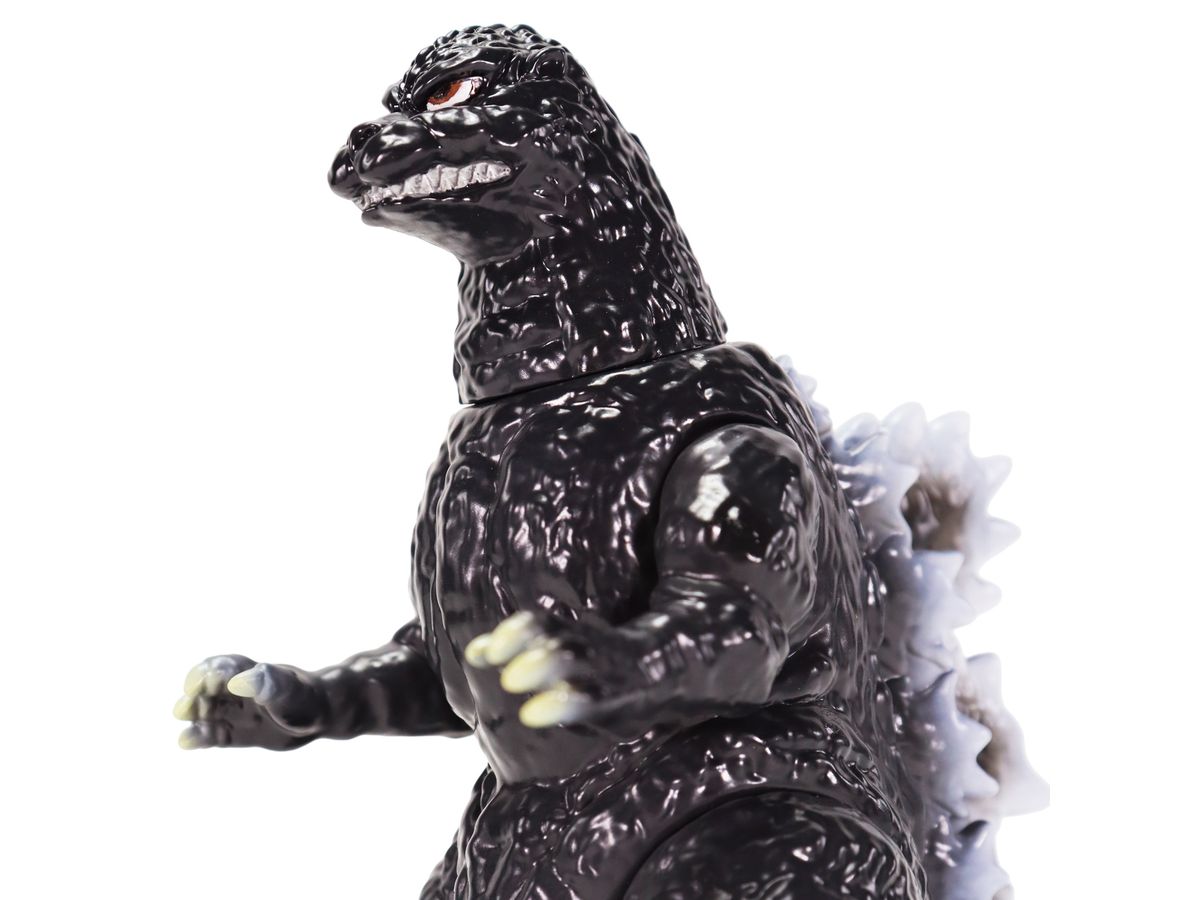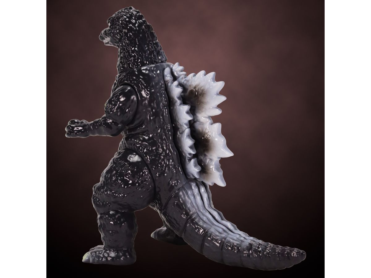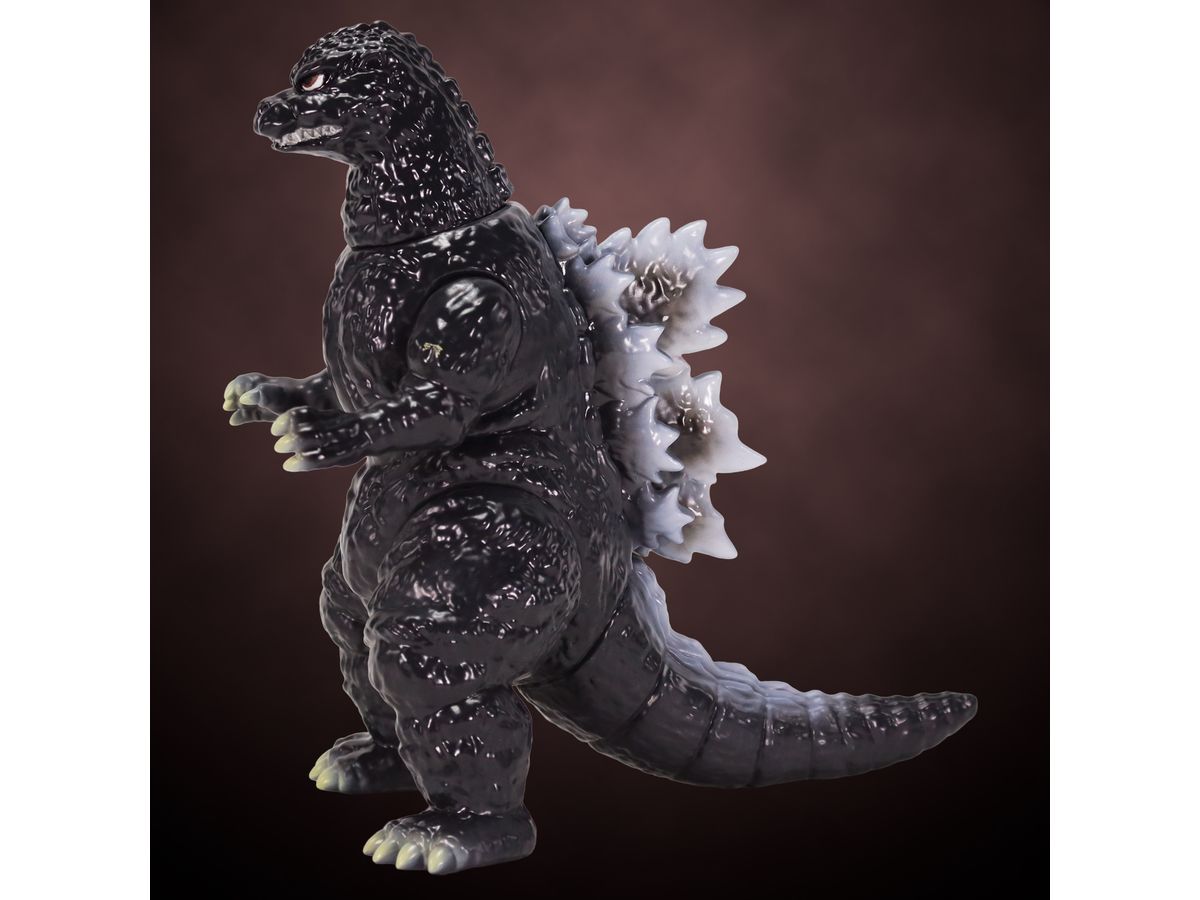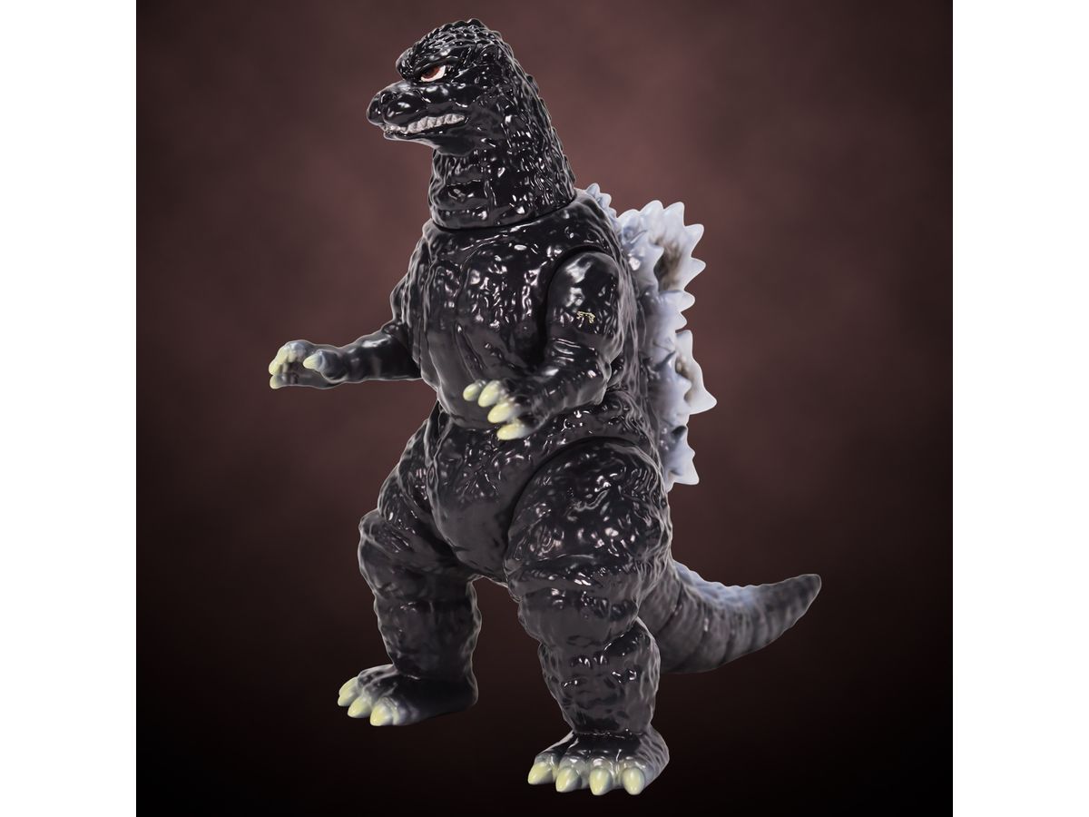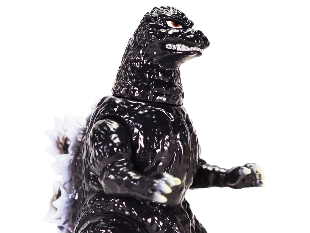 劇中でのゴジラの、マッシブな体型や盛り上がった頭頂部・背ビレの配列などの特徴を捉えてレトロタイプソフビへとデザイン。目の彩色では虹彩まで塗装する事で、相手を睨むかのような精悍な表情に。是非お手元にてお楽しみください。