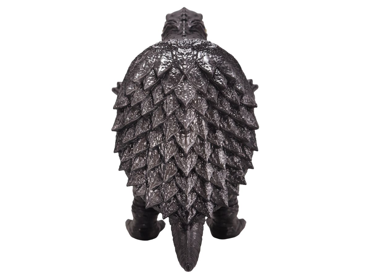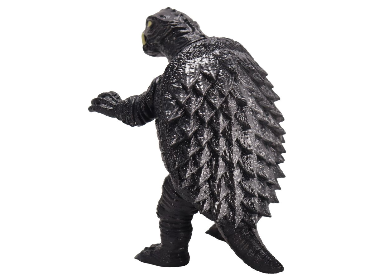 昭和ガメラの特徴を捉えた顔・手足の造型や、折り重なった甲羅のディテールなど見ごたえのある造型に、「スタンダードVer.」ではガメラの体色をイメージしたダークグレー成型に、各部の彩色とレトロソフビらしいシルバー吹きが施された、まさにスタンダードな仕上がりとなっています。