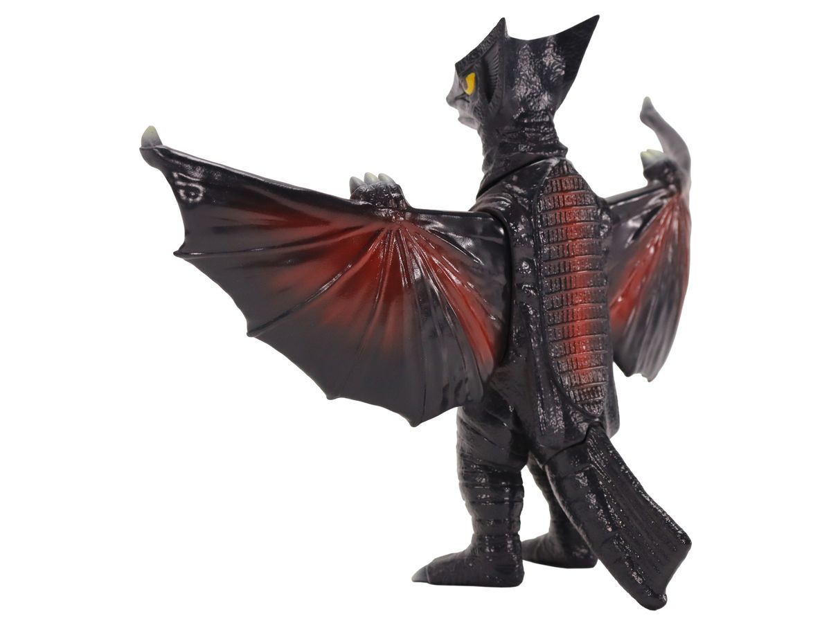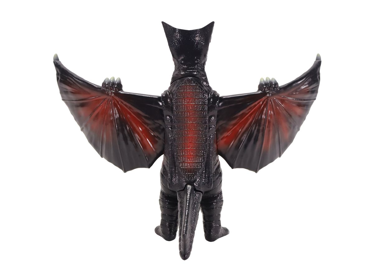 三角状の頭部や体表の特徴を捉えたディテール、前にしなるようなポージングを加えた翼など見ごたえのある造型に、「スタンダードVer.」ではギャオスの体色をイメージしたダークグレー成型に赤いラインが彩色された、まさにギャオスらしい一品に仕上がっています。