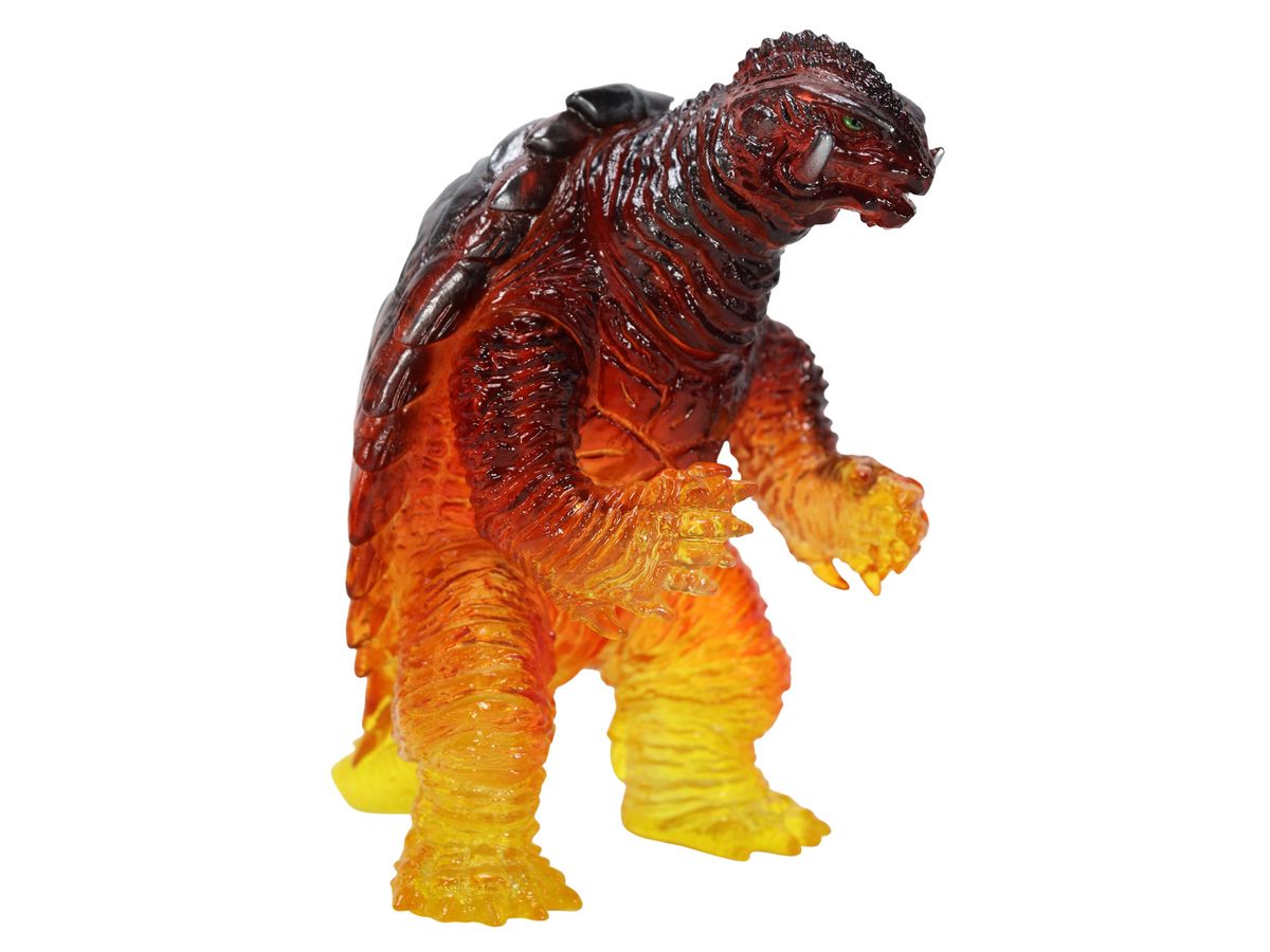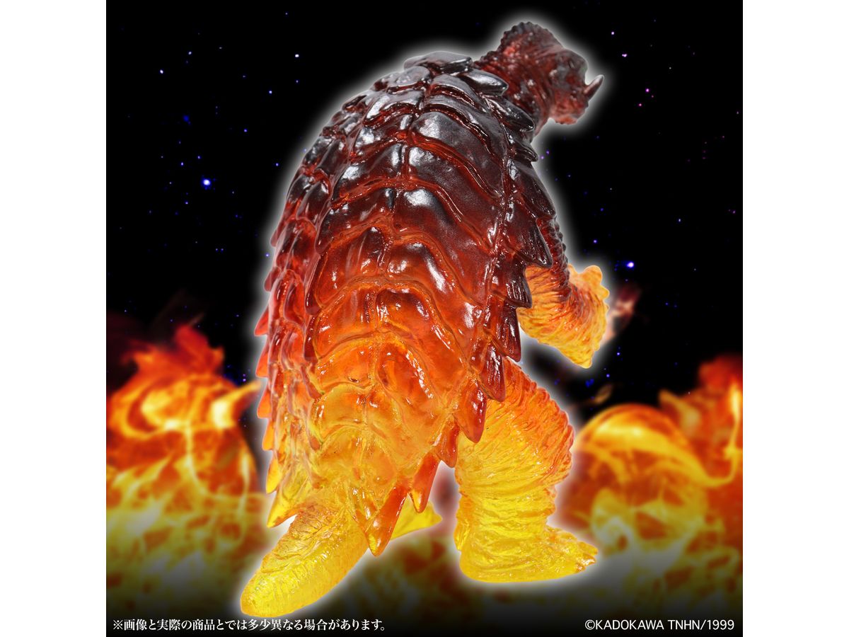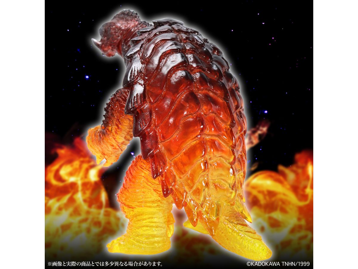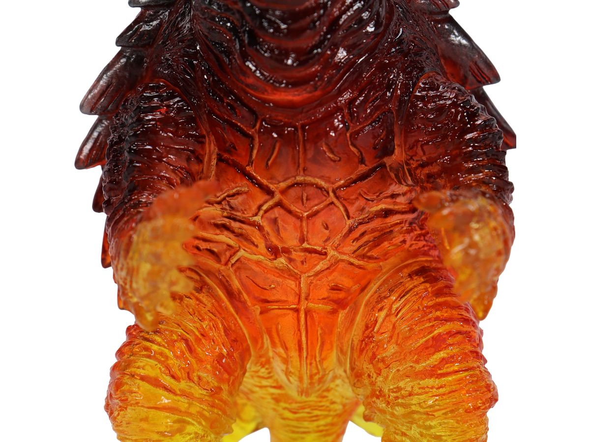 ミドルサイズシリーズより、劇中の名場面をイメージした美しいガメラ達が登場!!「ガメラ(1999)京都炎上Ver.」では、燃える京都でイリスと対峙するガメラを、クリアソフビ成形・彩色を駆使して美しく表現。燃え上がる炎を、足元からクリアイエロー・クリアレッドのグラデーション彩色を施す事で、熱源まで感じられるかのような仕上がりとなっています。黒い表皮と赤い炎が折り重なった上半身の彩色も見どころ。CCPJAPANによるこだわりが詰まった美しいソフビをどうぞお楽しみください。