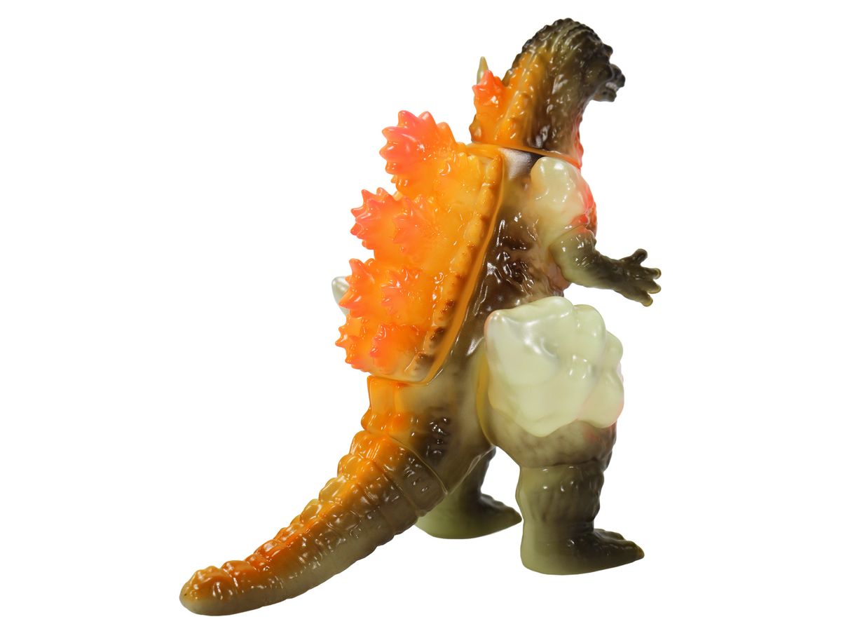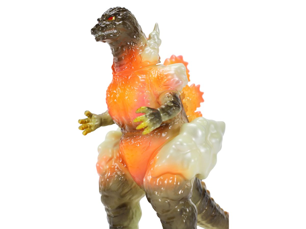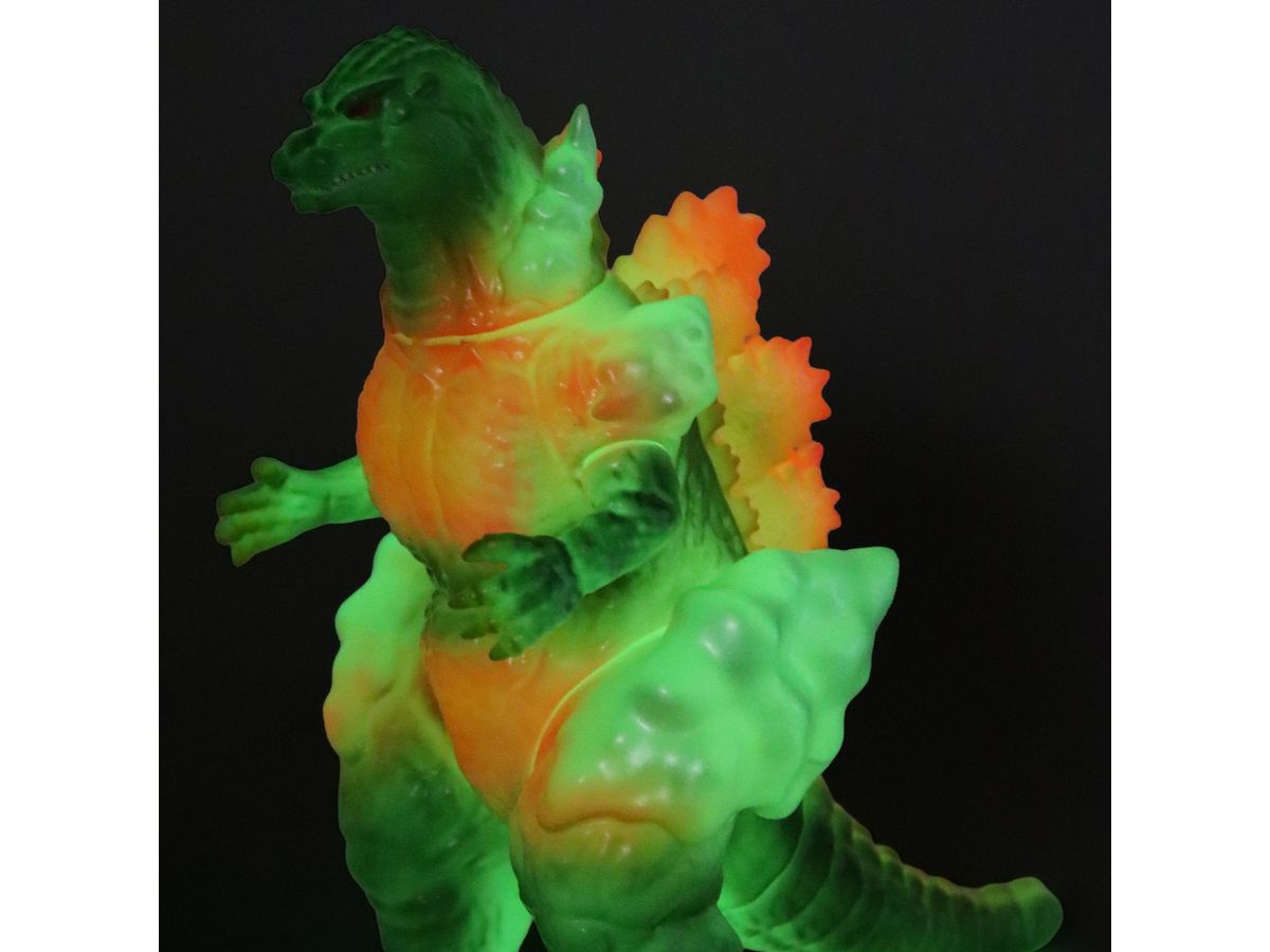 メルトダウン寸前の赤く輝くゴジラを、発色の良い蛍光カラーを使用するなど、彩色にもこだわり抜いた蓄光ソフビで再現。
