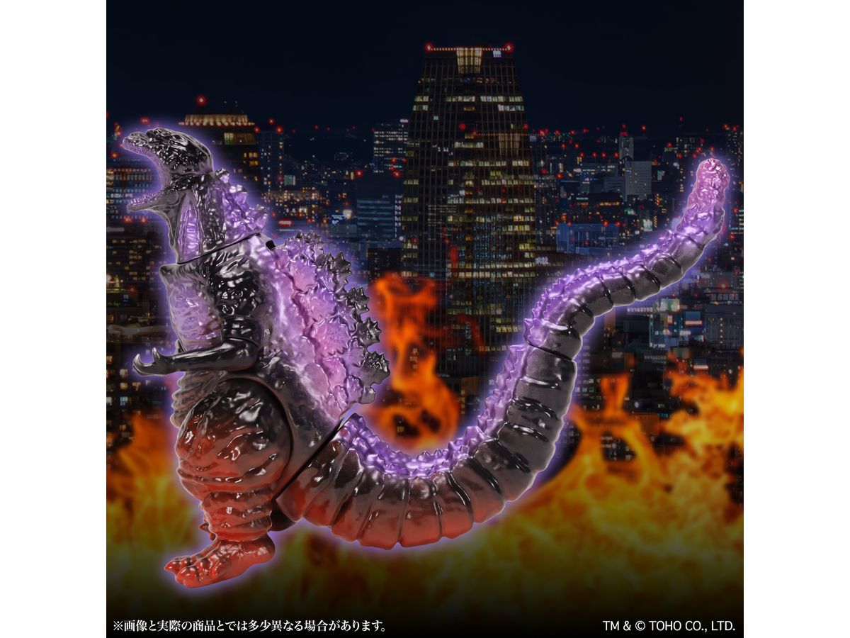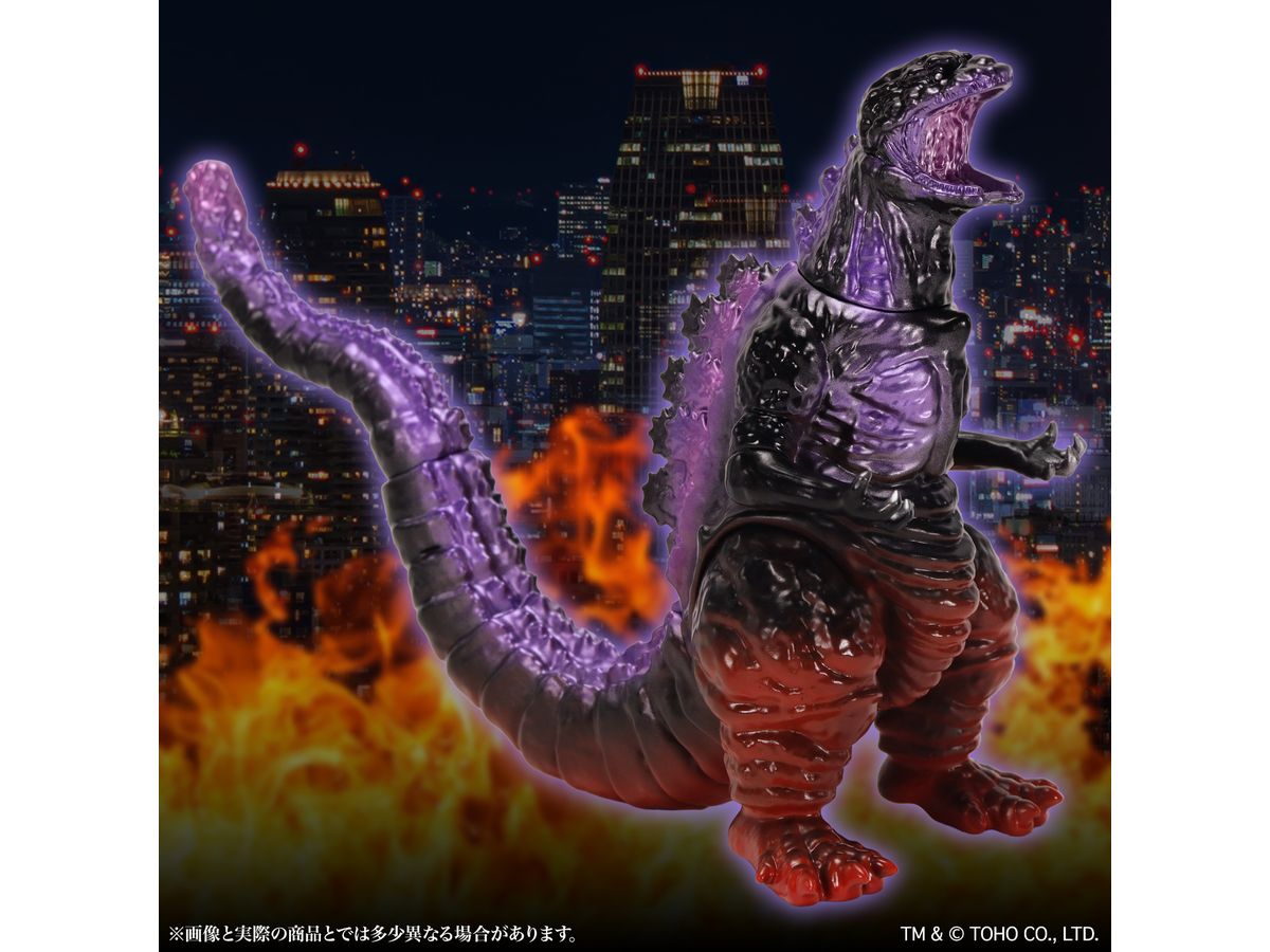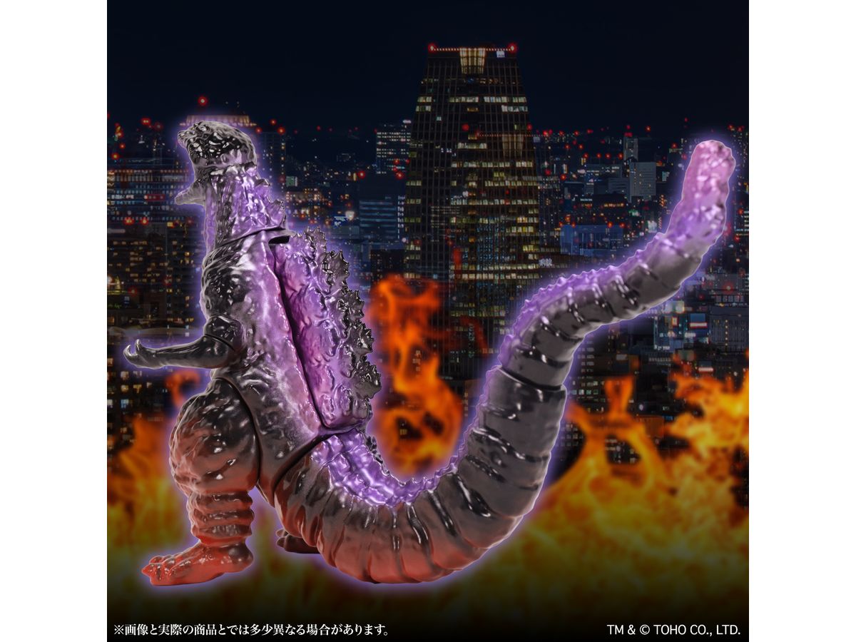 ミドルゴジラEXより大人気の「ゴジラ(2016)」が、映画『シン・ゴジラ』において第4形態の初上陸後に東京へと進撃するシーンをイメージした「夜間進撃Ver.」となって登場!!黒いボディに、煌々とした赤い光と炎の照り返しが光る一品となりました。