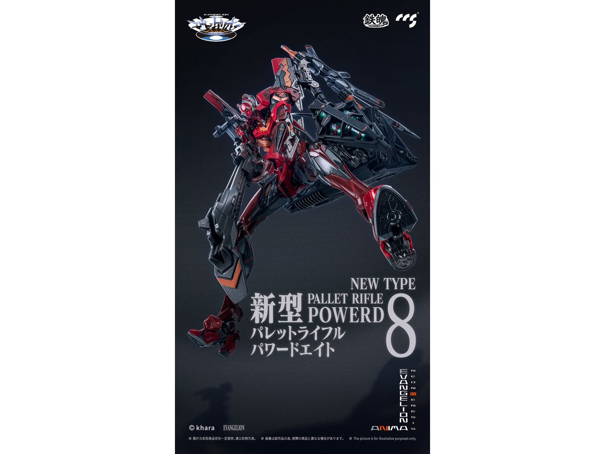 さらに、背部に装着可能な無線給電装備「マイクロ波レーザー給電レクテナ」をはじめ、 「新型パレットライフル パワードエイト」「N2爆雷ラック」「ロンギヌスの槍」など、 作品を象徴する各種武装が豪華付属。
