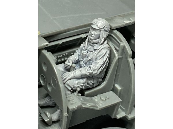 操縦者用九七式縛帯をつけ、大戦初期型の航空帽を被っています。