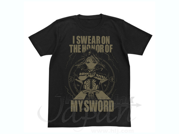 衛宮切嗣が召喚したサーヴァント、“セイバー”をプリントしたハードなデザインのTシャツ。