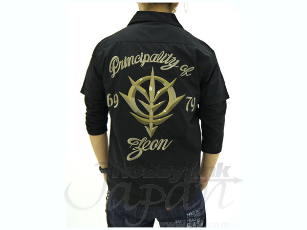 ジオン公国のシンボルマークをフロントとバックに刺繍で表現したワークシャツ。