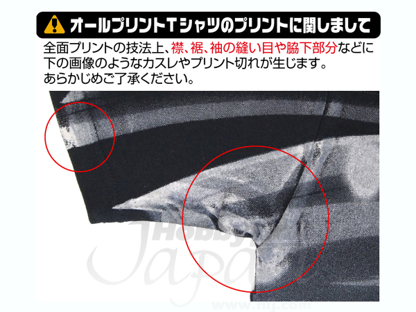 ※全面プリントの技法上、縫い目や脇下部分に若干のカスレやプリント切れが生じます。ご了承ください。