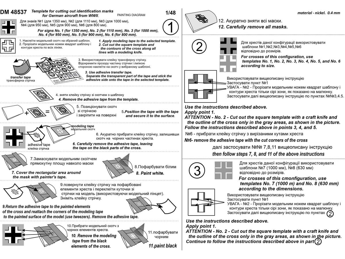 ・1350mm、1100mm、1000mm x 2種、950mm、900mm、800mm、630mmの胴体・主翼マークと800mm、500mm、400mm、300mm鉤十字のカットガイドが付属