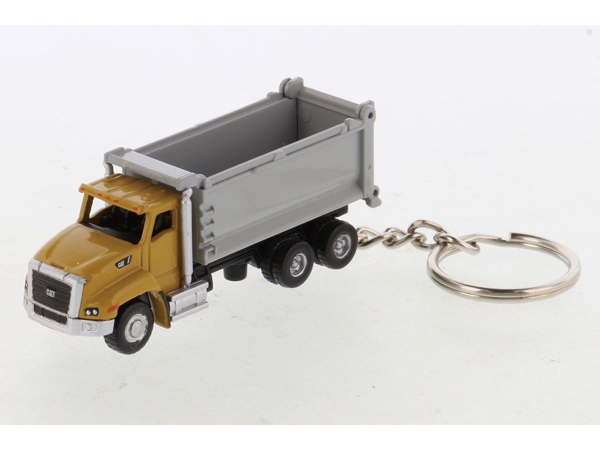 キーチェーンの先に大型のダンプトラック、CAT 660 ダンプトラックを再現した完成モデルをセット。