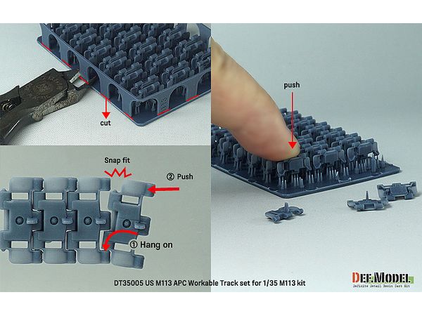 アメリカ軍など多数の国で運用されているM113兵員輸送車用の3Dプリント製連結可動履帯セットです。