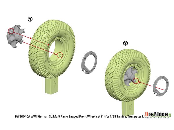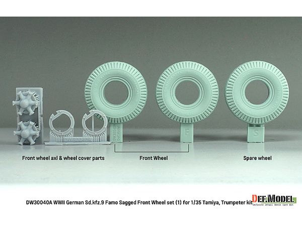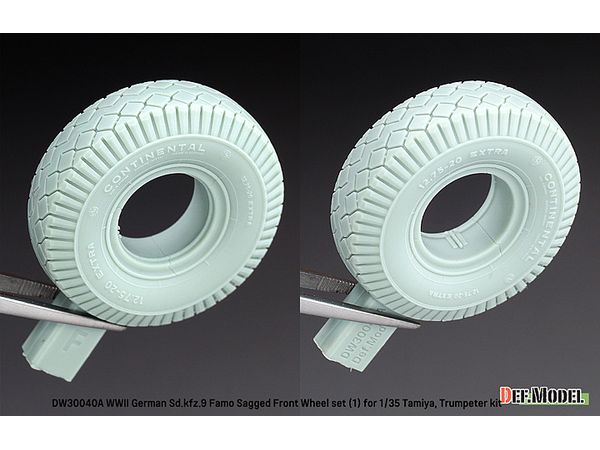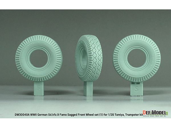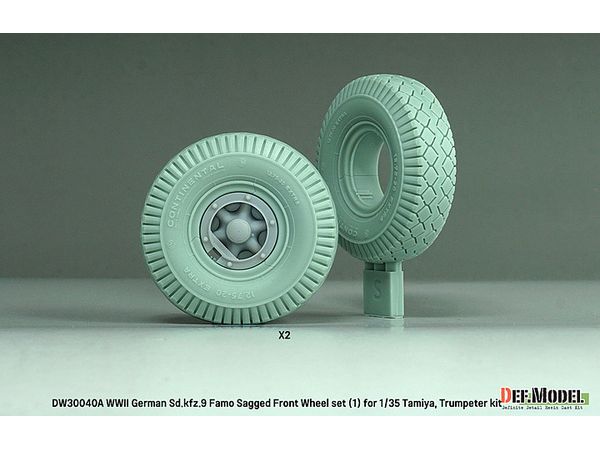 第二次大戦ドイツ軍が運用した重牽引車Sd.Kfz.9 18トンハーフトラックFAMO(ファモ)の前輪ホイールを再現する自重変形タイヤセットです。