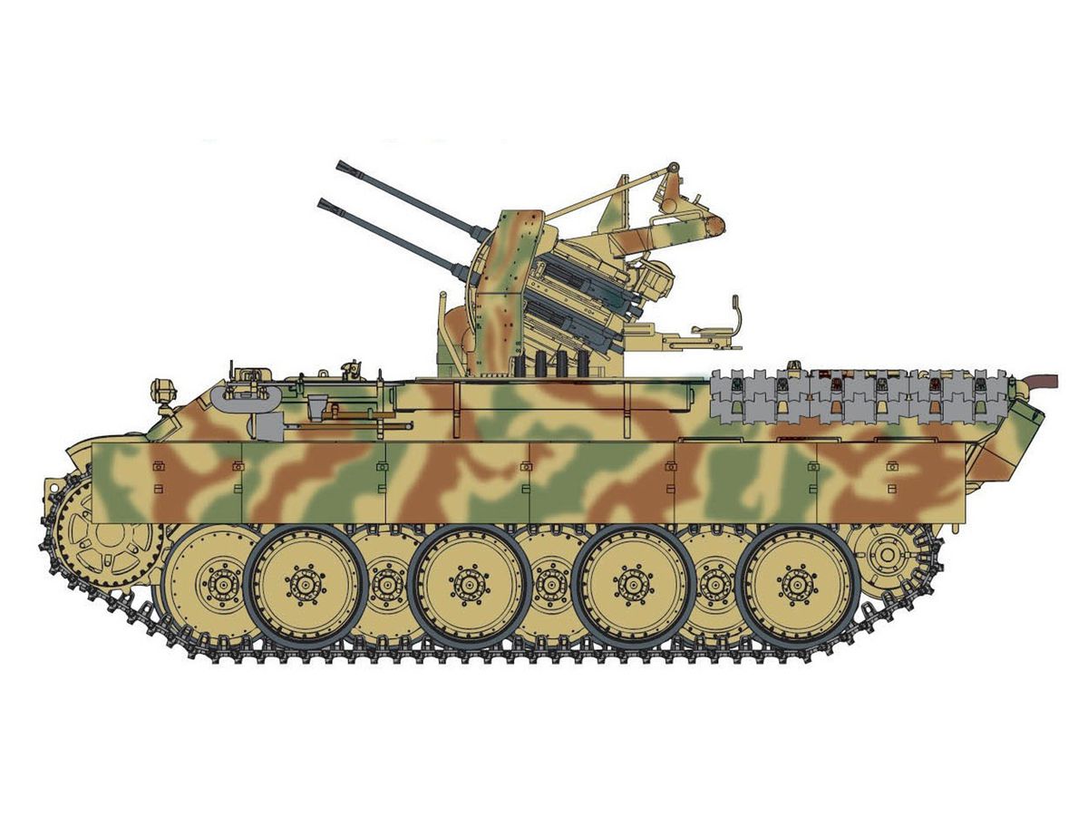 第653重戦車大隊が運用した対空戦車もそのひとつで、パンターD型の車体に傑作対空機関砲として知られた2cm4連装Flak38を搭載。