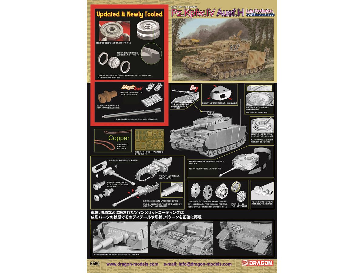 1/35 WW.II ドイツ軍 IV号戦車H型後期生産型 ツィンメリットコーティング付き マジックトラック/アルミ砲身/3Dプリントマズルブレーキ付属 豪華仕様