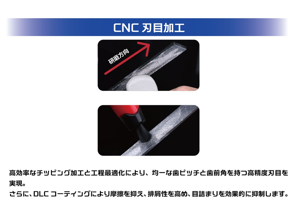 ヤスリ表面全体にDLCコーティング*を施しました。