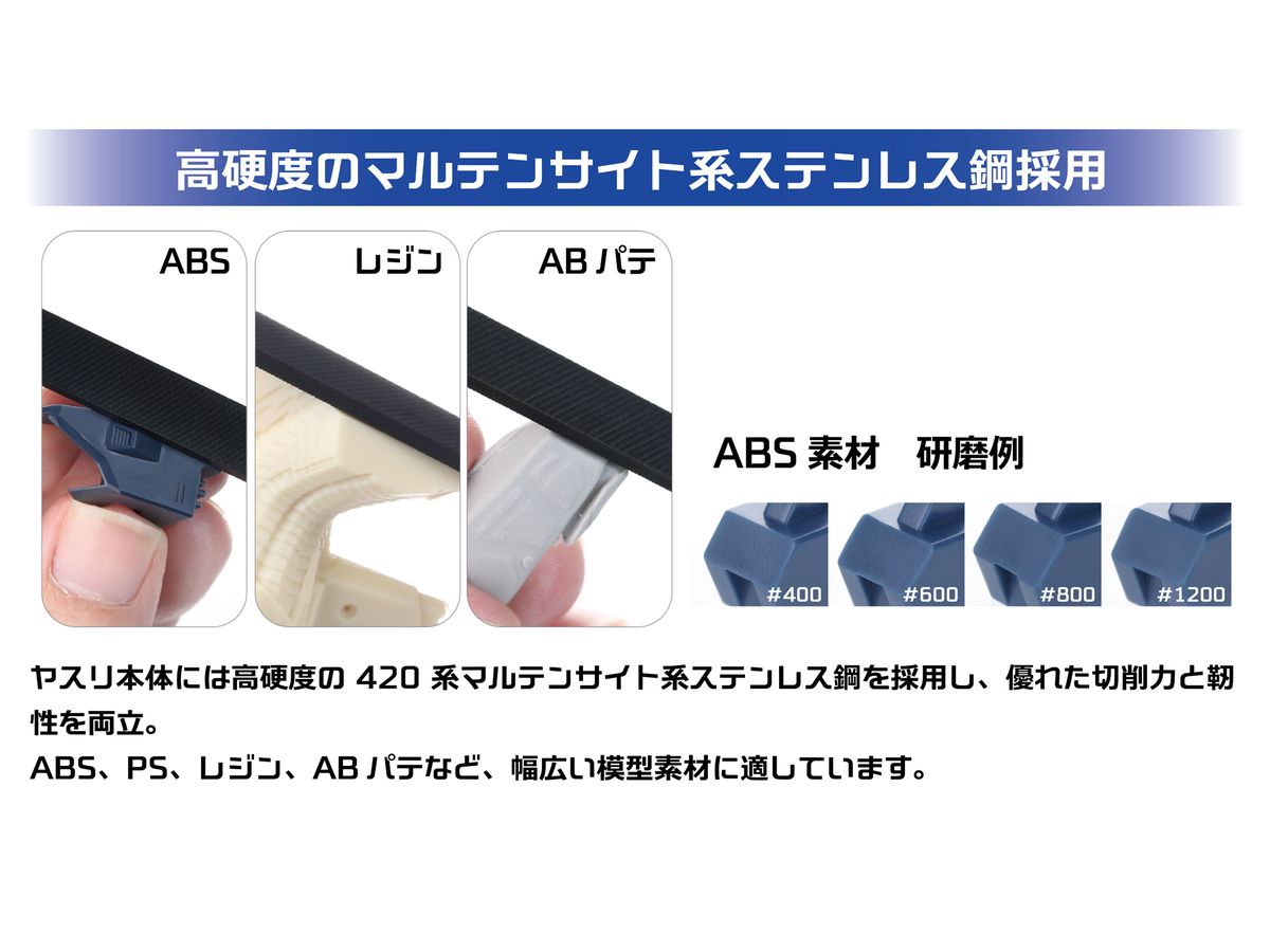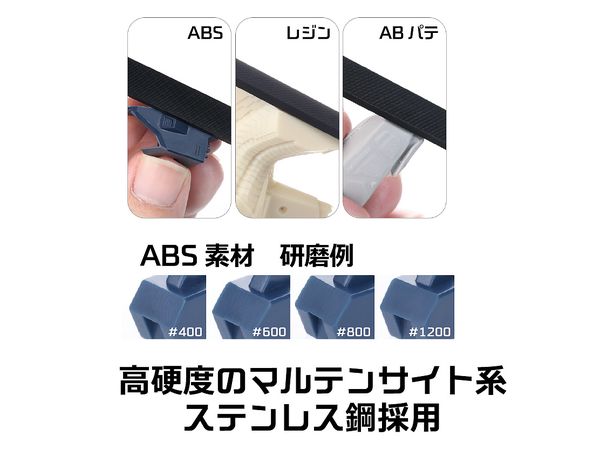 ABS、PS、レジン、ABパテなど、幅広い模型素材に適しています。