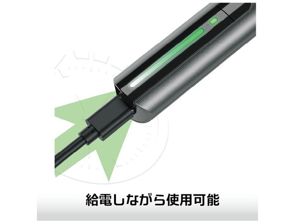 給電しながらの使用も可能となり、充電不足を気にせず快適に作業できます。