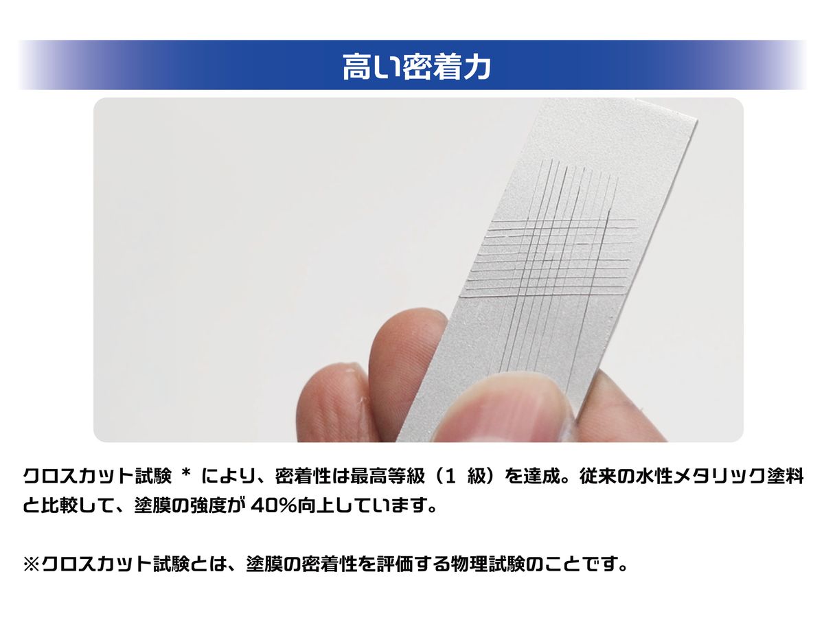 従来の水性メタリック塗料と比較して、塗膜の強度が40%向上しています。