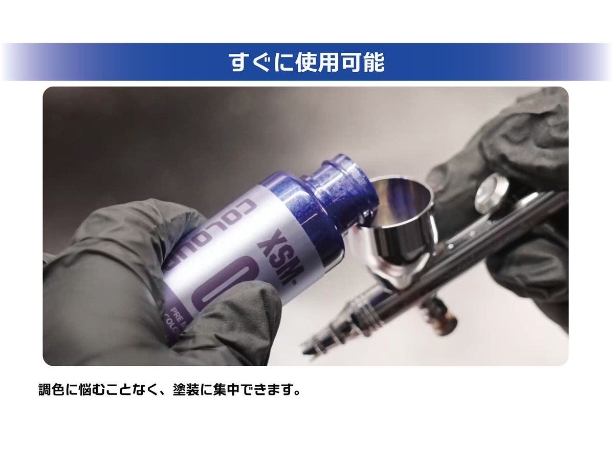 湿度の影響を受けにくい配合で、低圧のコンプレッサーでも均一でメタリックの繊細な質感を表現します。