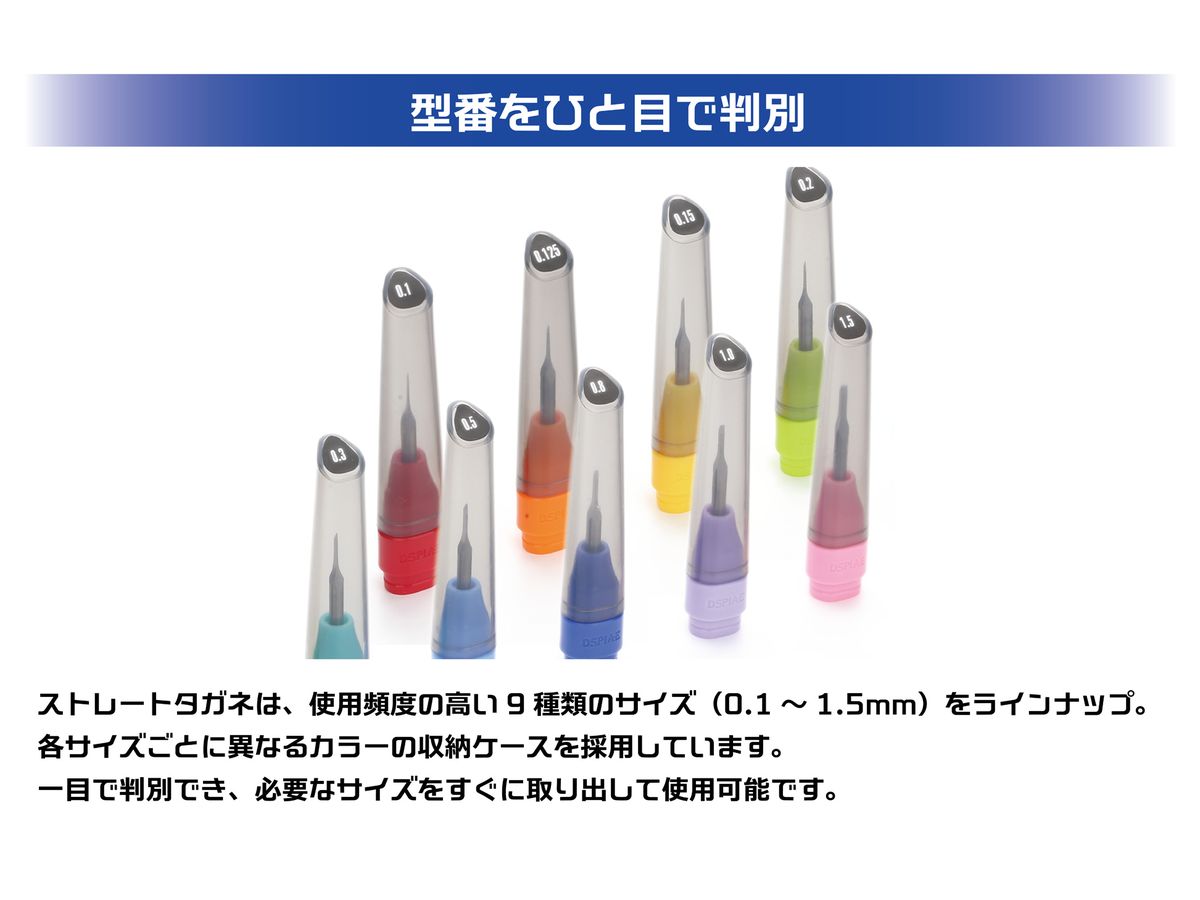 ストレートタガネは、使用頻度の高い9種類のサイズ(0.1~1.5mm)をラインナップ。