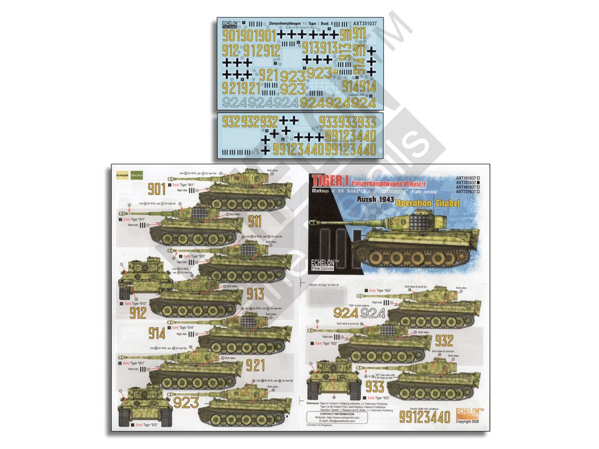 ドイツ側名称「ツィタデレ(城塞)作戦」と呼ばれたクルクスの戦いに参戦したSS第3戦車連隊所属のタイガーI初期型のマーキングを10種類収録したデカール集です。