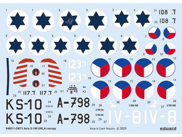 1/48 アビア S-199 (エルラキャノピー) Tフェース 両面塗装マスクシール (エデュアルド用)