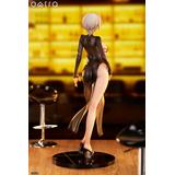 銀色のショートヘアがふわりと揺れ、大胆なシースルーのブラックドレスに身を包み、しなやかなボディラインが大人の色気を漂わせます。