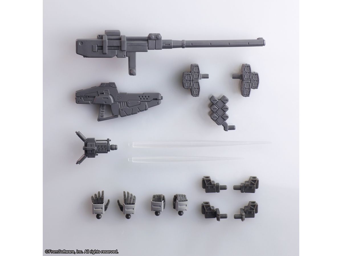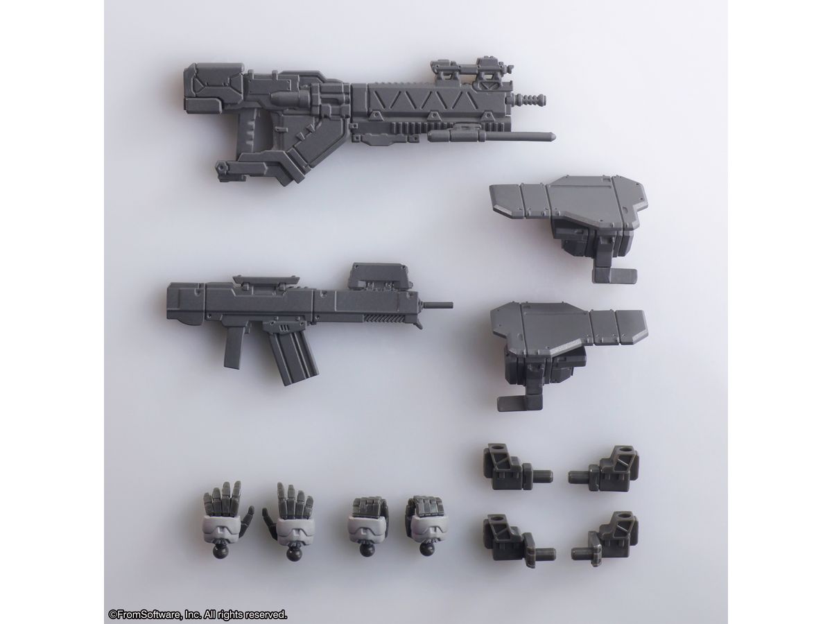 頭部、腕部、コア、脚部、武器マウント等は第一弾と共通設計となっているので、自由度の高いアセンブルをお楽しみ頂けます。