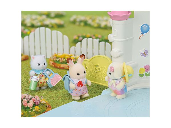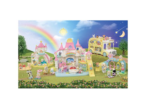 別売りの「みんなのおひさまほいくえん」「あそぼう!みんなのほいくえんバス」「なかよしブランコセット」「お城のおすなば・プールセット」「フローラウサギファミリー」と一緒に遊ぶと、もっと楽しく遊べます。