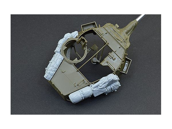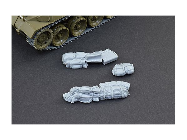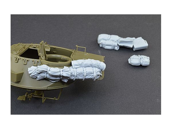 戦場写真などでよく見られる、砲塔両側面のラックに満載された積荷をレジン製パーツでモデル化し、キットにそのまま取り付けるだけで行動中の状態をリアルに再現できます。