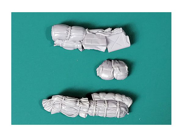 積荷は折り畳まれたキャンバス、各種バッグ、ジェリカンなどを3パーツで精密に再現します。