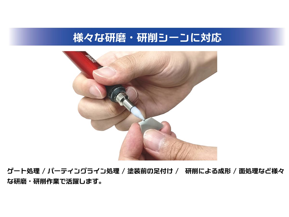 ゲート処理/パーティングライン処理/塗装前の足付け/ 研削による成形/面処理など様々な研磨・研削作業で活躍します。