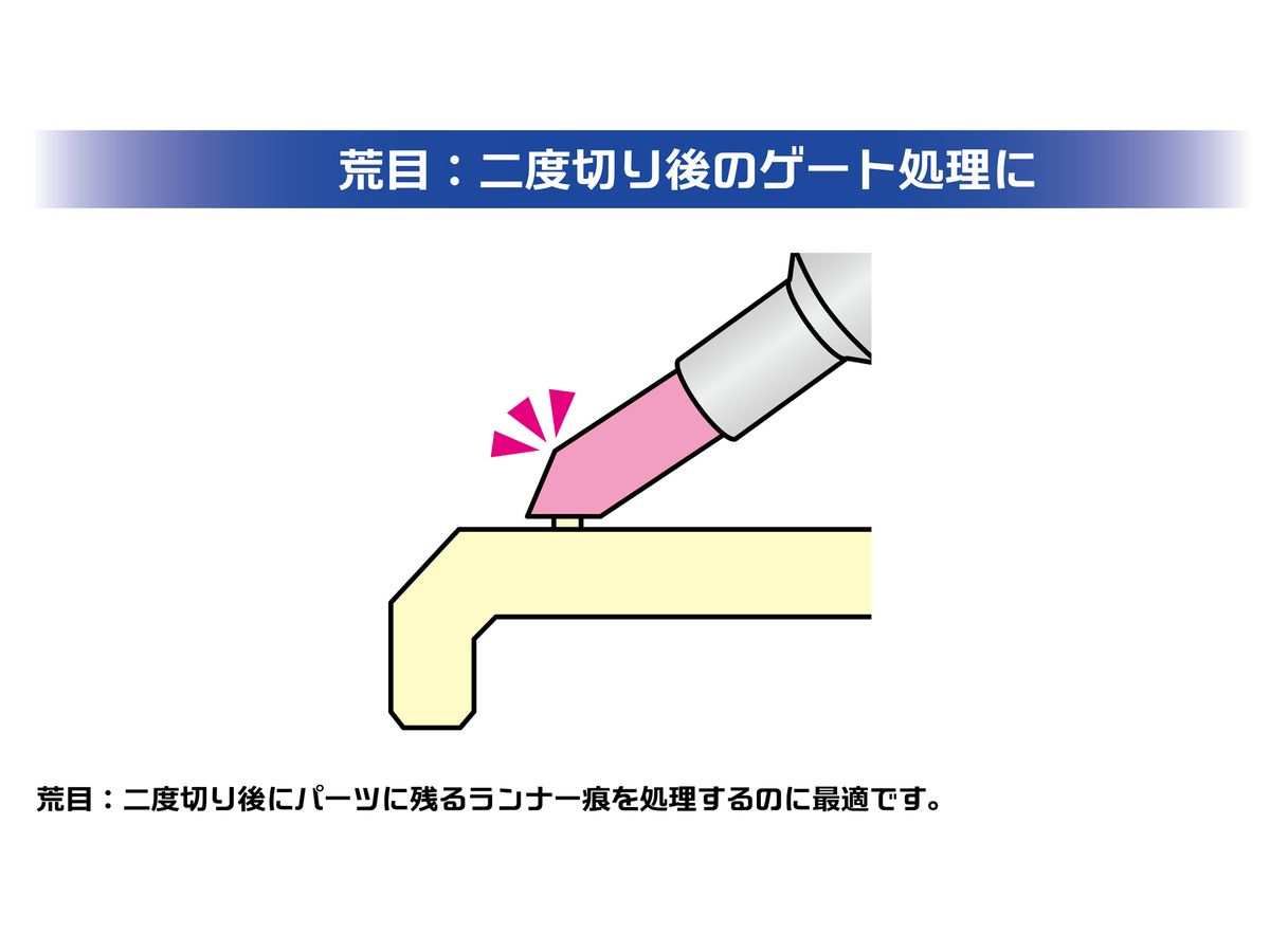 二度切り後にパーツに残るランナー痕を処理するのに最適です。