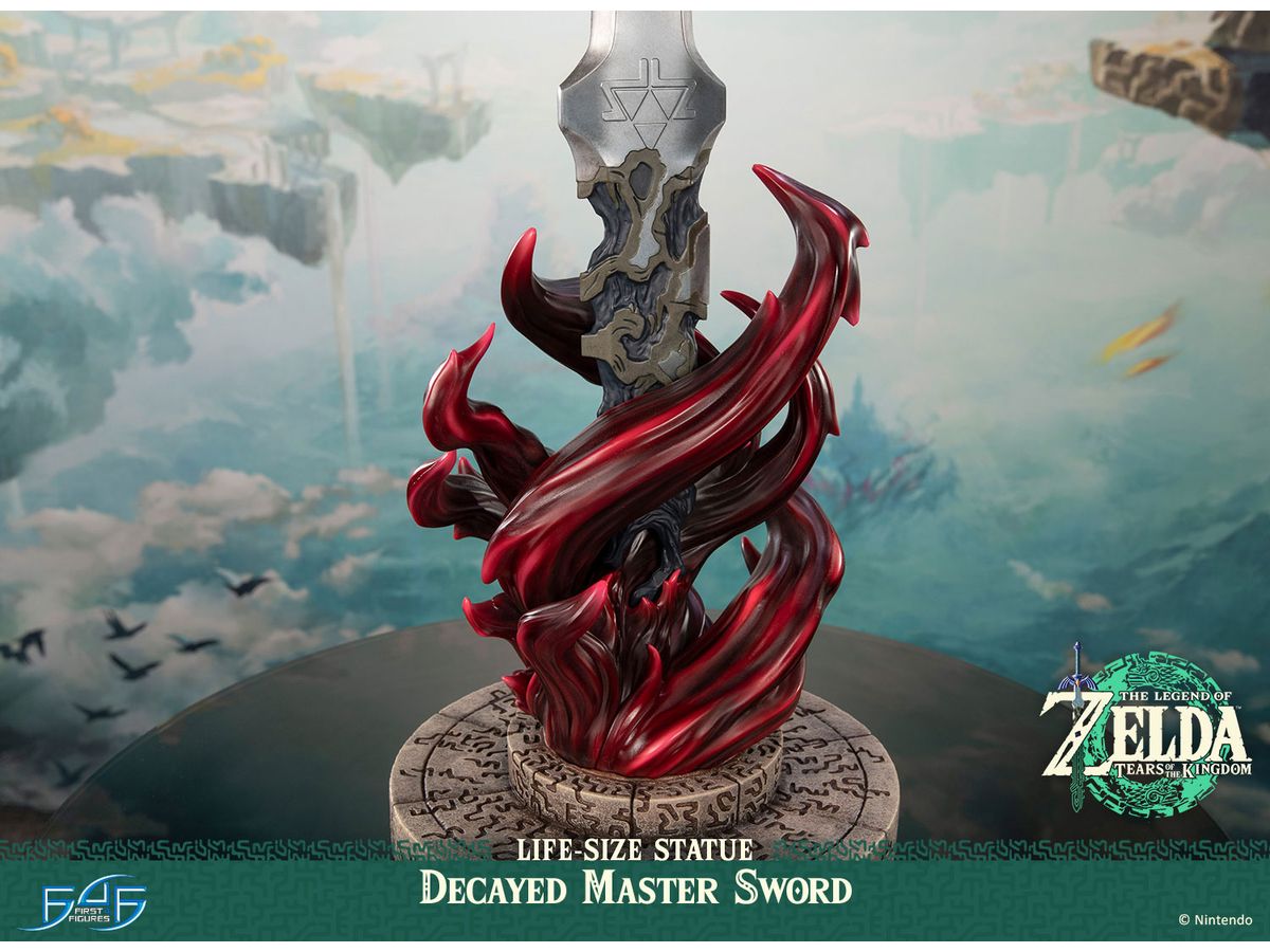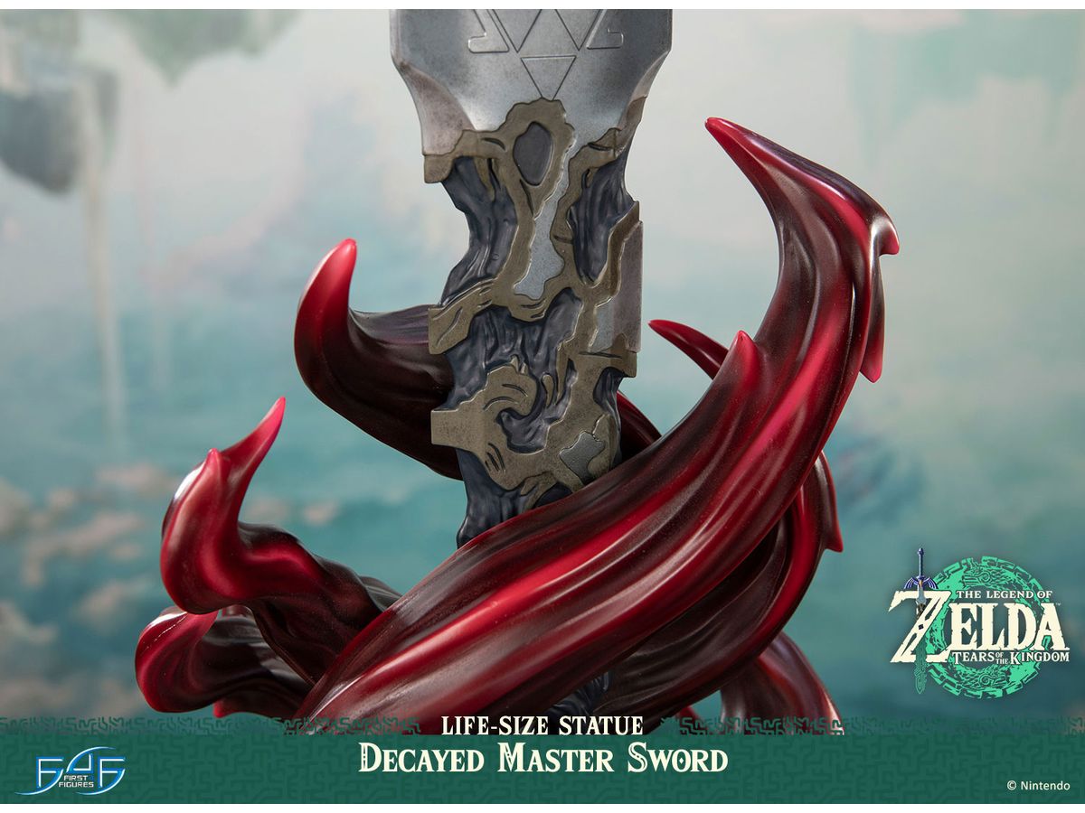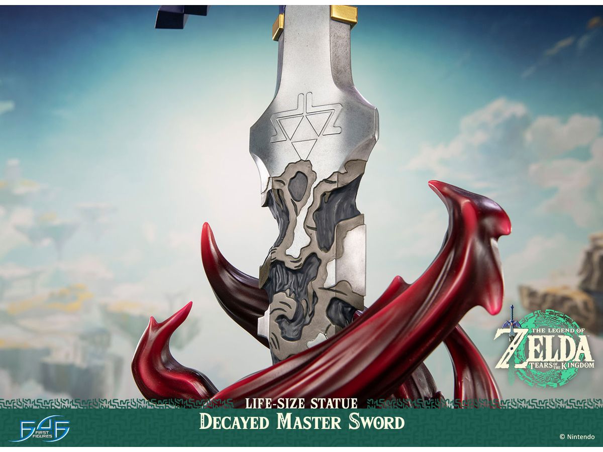 『ブレス オブ ザ ワイルド』の続編としてリリースされたゲーム『ゼルダの伝説 ティアーズ オブ ザ キングダム』より、ハイラル城の地下で、封印が解けたガノンドロフが""瘴気""を放ったシーンからインスパイアされ、朽ちたマスターソードが1/1のライフサイズスケールでスタチュー化!