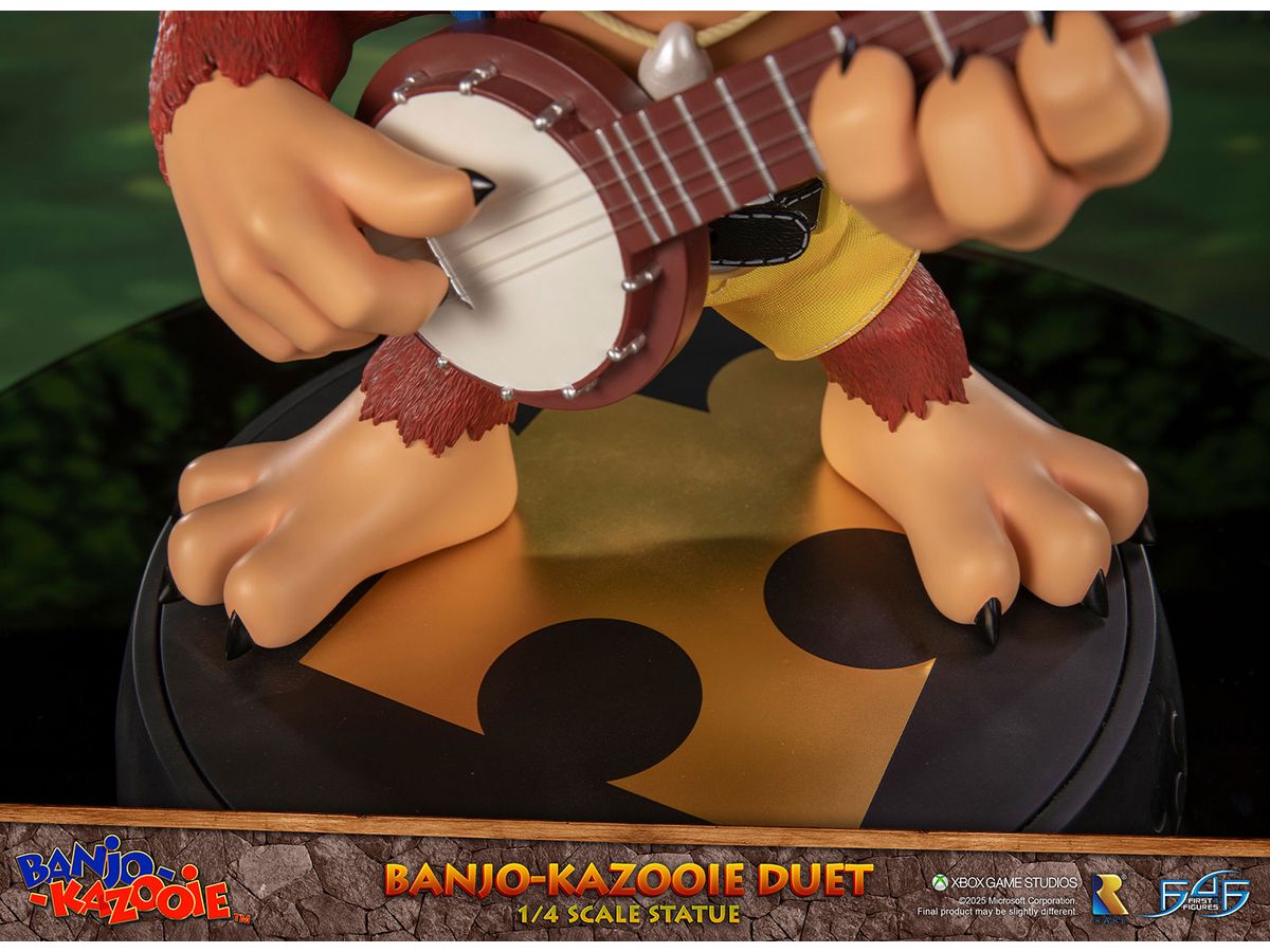 愛嬌のあるクマ「バンジョー」はバンジョーを、威勢が良い騒がし鳥「カズーイ」はカズー(笛)で"デュエット"する姿は楽しそうな雰囲気が伝わってくる好造型!限定のシリアルナンバー入り。