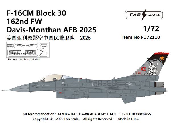 1/72 F-16CM ブロック30 第162戦闘飛行隊デビスモンサン空軍基地 2025