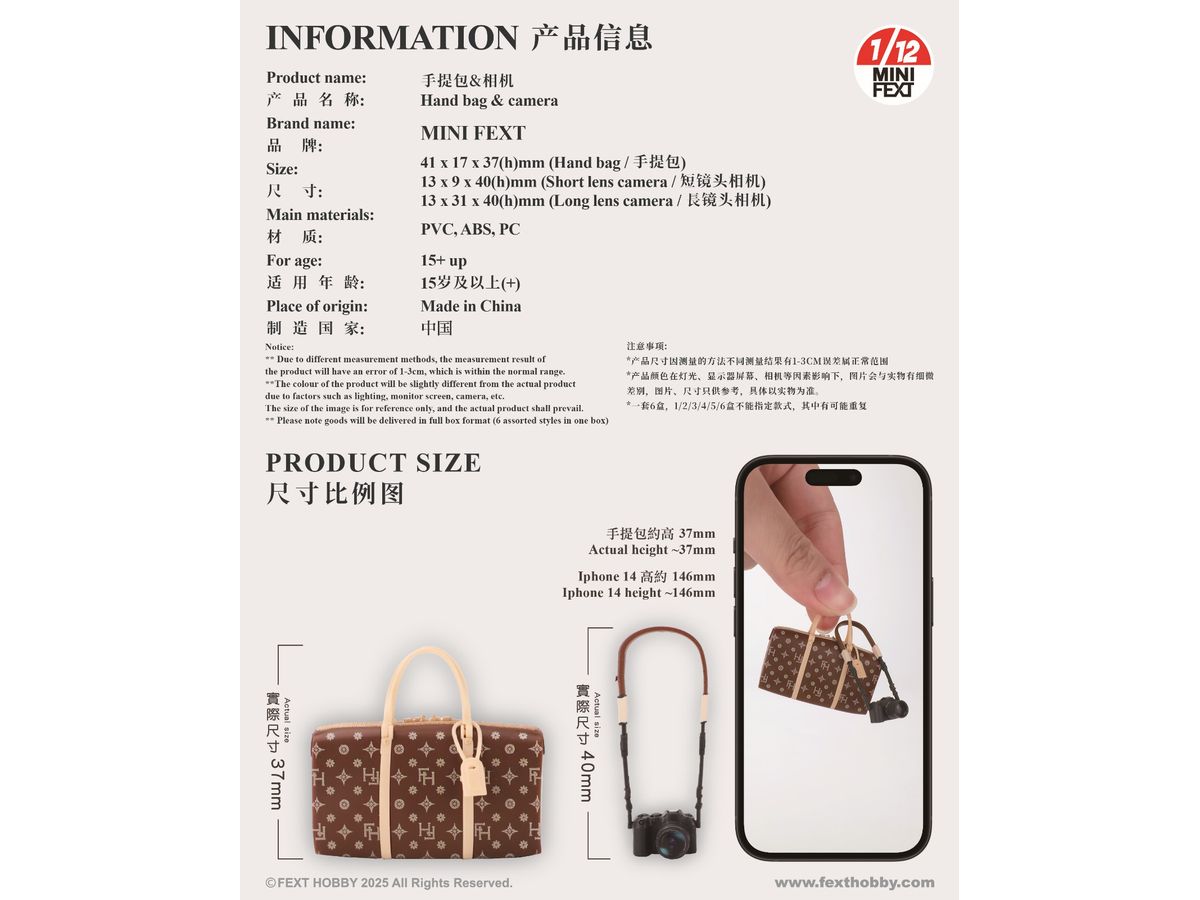 トイブランドFEXT HOBBY企画製作の下、 1/12スケールトレーディングミニチュアセット「ハンドバッグ&カメラ」をお届けします!