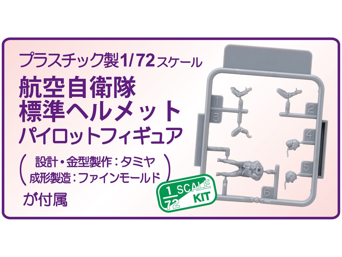 当製品は従来製品に加え、空自の標準ヘルメットを装着したパイロットフィギュア1体が付属。